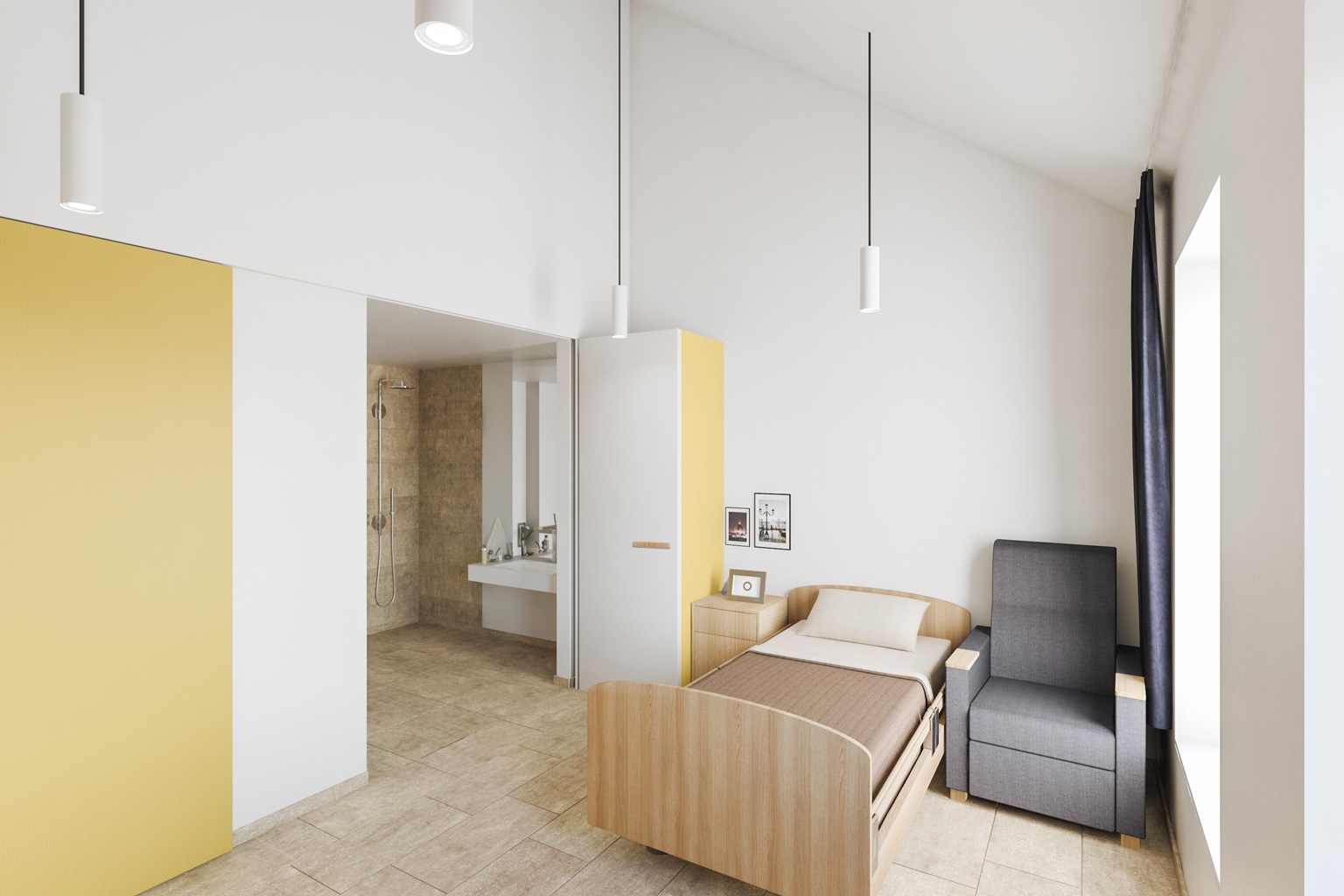 Onze kamers zijn goed uitgerust en voorzien van de nodige faciliteiten voor een goede zorgondersteuning en nachtrust. Zo voorzien we aangepaste bedden van het Duitse merk Stiegelmeyer, de enige echte Tempur-Med anti-decubitus zorgmatrassen, Axio iTec meldingsknoppen van Televic met Duplex Interfonie en inclusief Akoestische Oproep voor valdetectie, Proximus TV, de nodige inbouwkasten, een comfortabele fauteuil en een tafel met stoel.